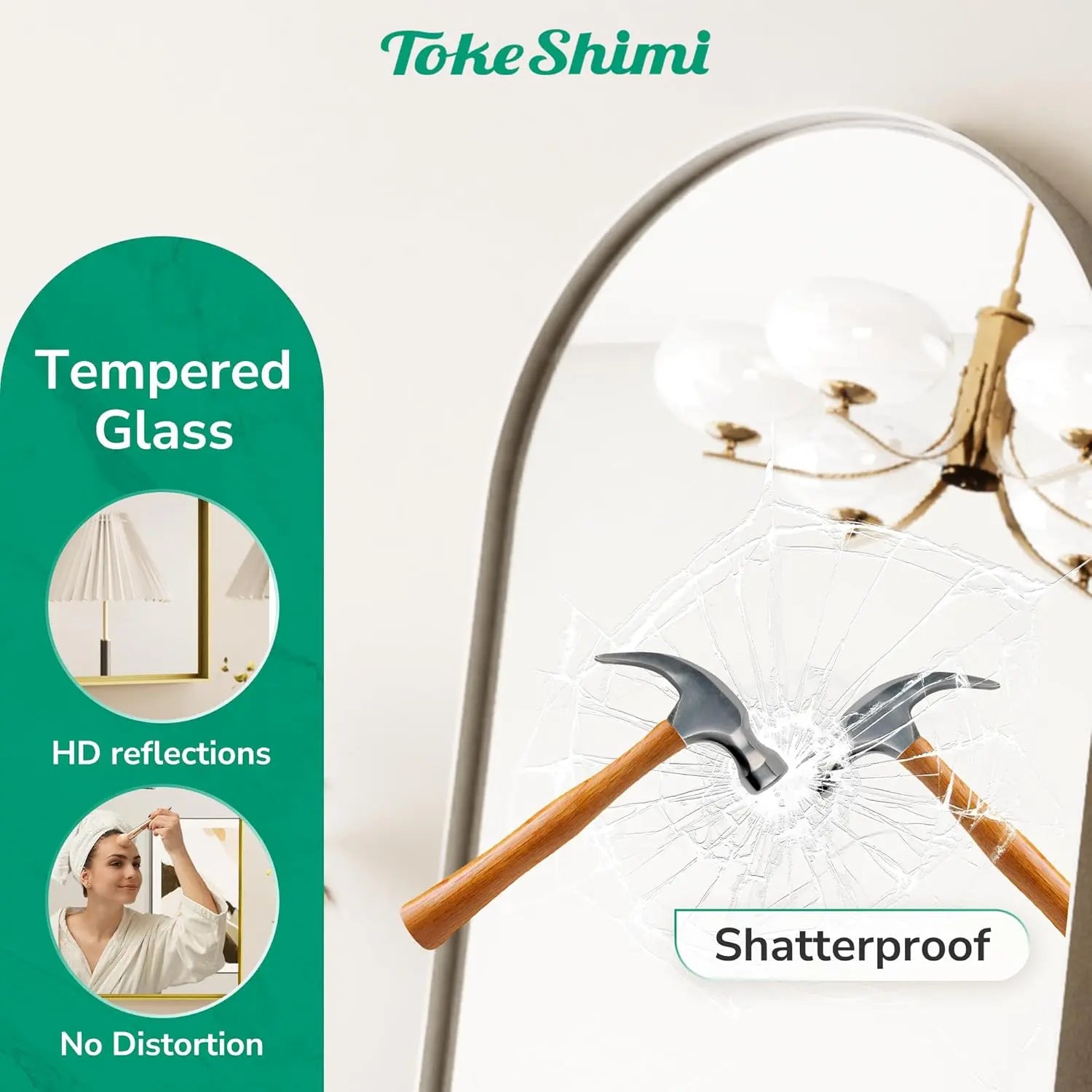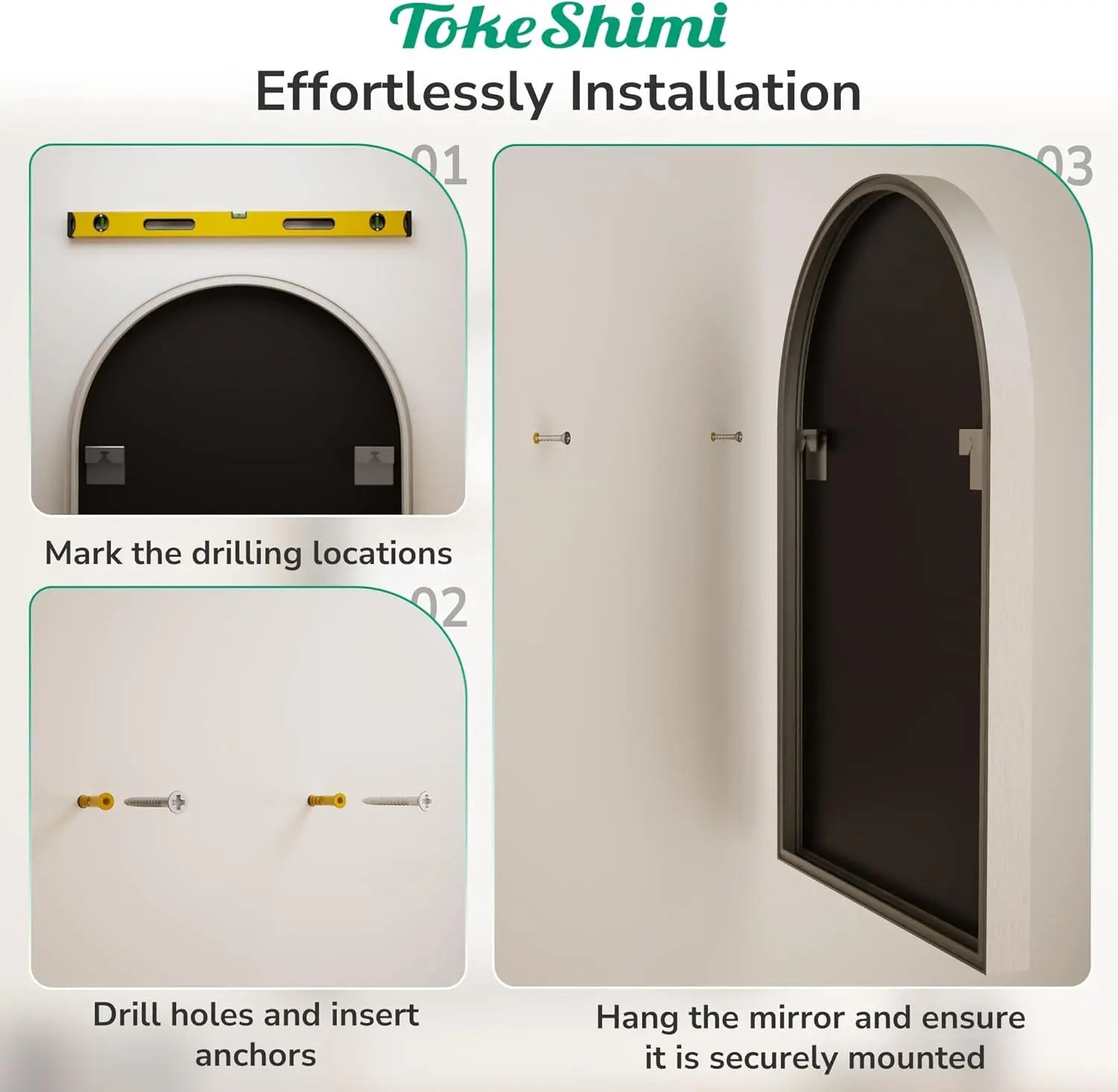 1. Sleek Arched Design: Tokeshimi arched bathroom mirror not only enhances your room's visual appeal but also infuses a sense of modern sophistication into any space with its gracefully arched top. Its deep frame design creates a striking floating effect, adding a sense of depth and lightness to the space