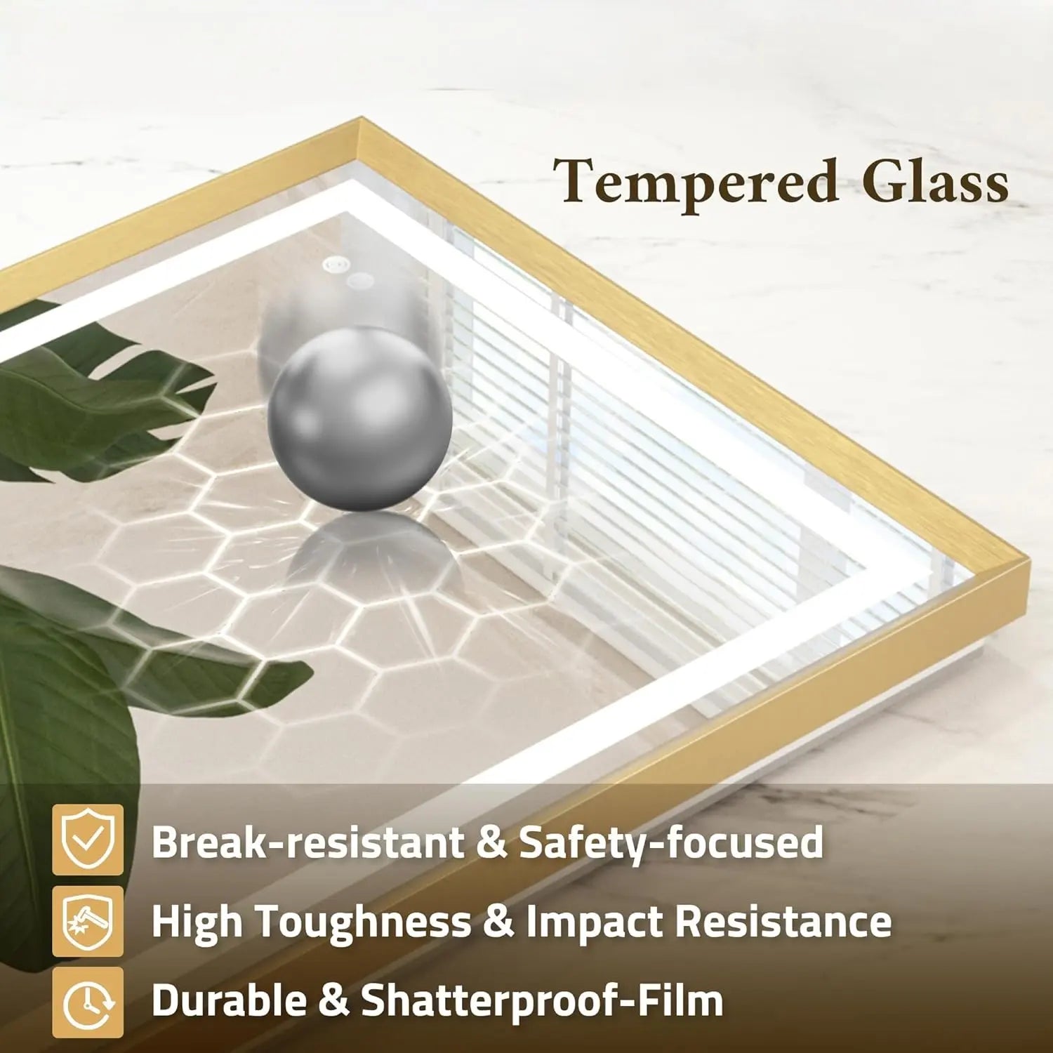 1. Modern Aluminum Frame: The modern frame design completes the look of your bathroom Vnity, available in black, gold, and nickel to perfectly match your style. Made from high-quality aluminum alloy, it is waterproof, rust-resistant, and provides added protection for the tempered glass mirror.