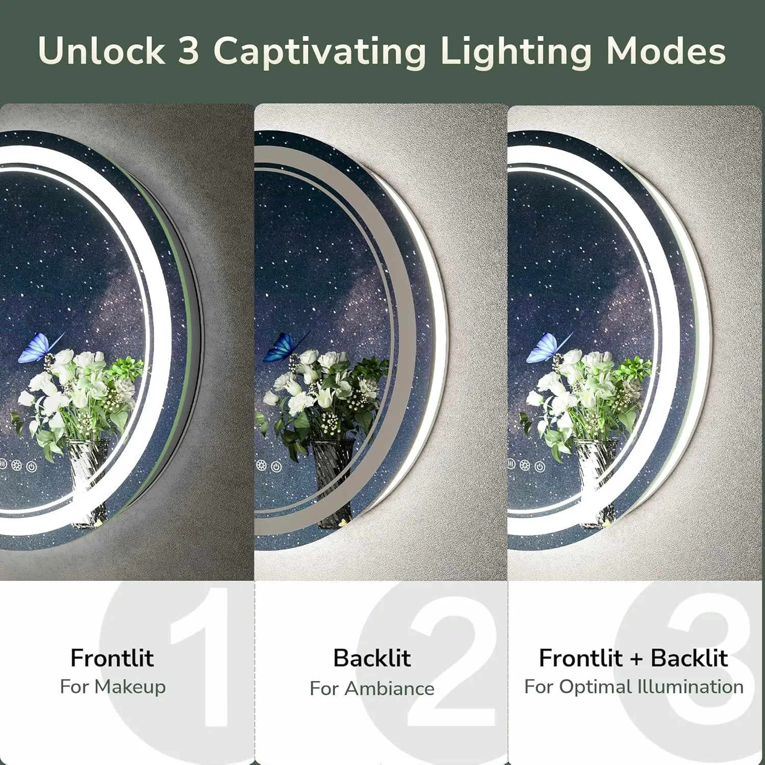 1. Double Light Strips to Allow Triple Lighting Modes: With its double light strips, LED Round Bathroom Mirror offers three different lighting modes, including front-lit, back-lit, and a combination of both. The front-lit mode provides a bright and clear reflection, while the backlit mode offers a softer and more ambient lighting effect. The combined mode creates an even illumination that is ideal for makeup or shaving.