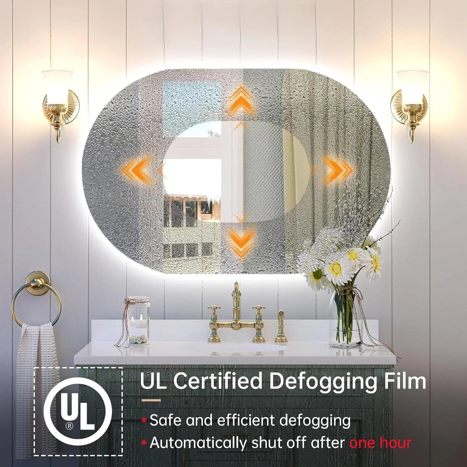 1. Dimmable Oval Led Mirror: This oval bathroom Vanity mirror with lights is dimmable, controlled with power switch. Simply touch the power switch button for 3 seconds to change light brightness from normal to brightest.
