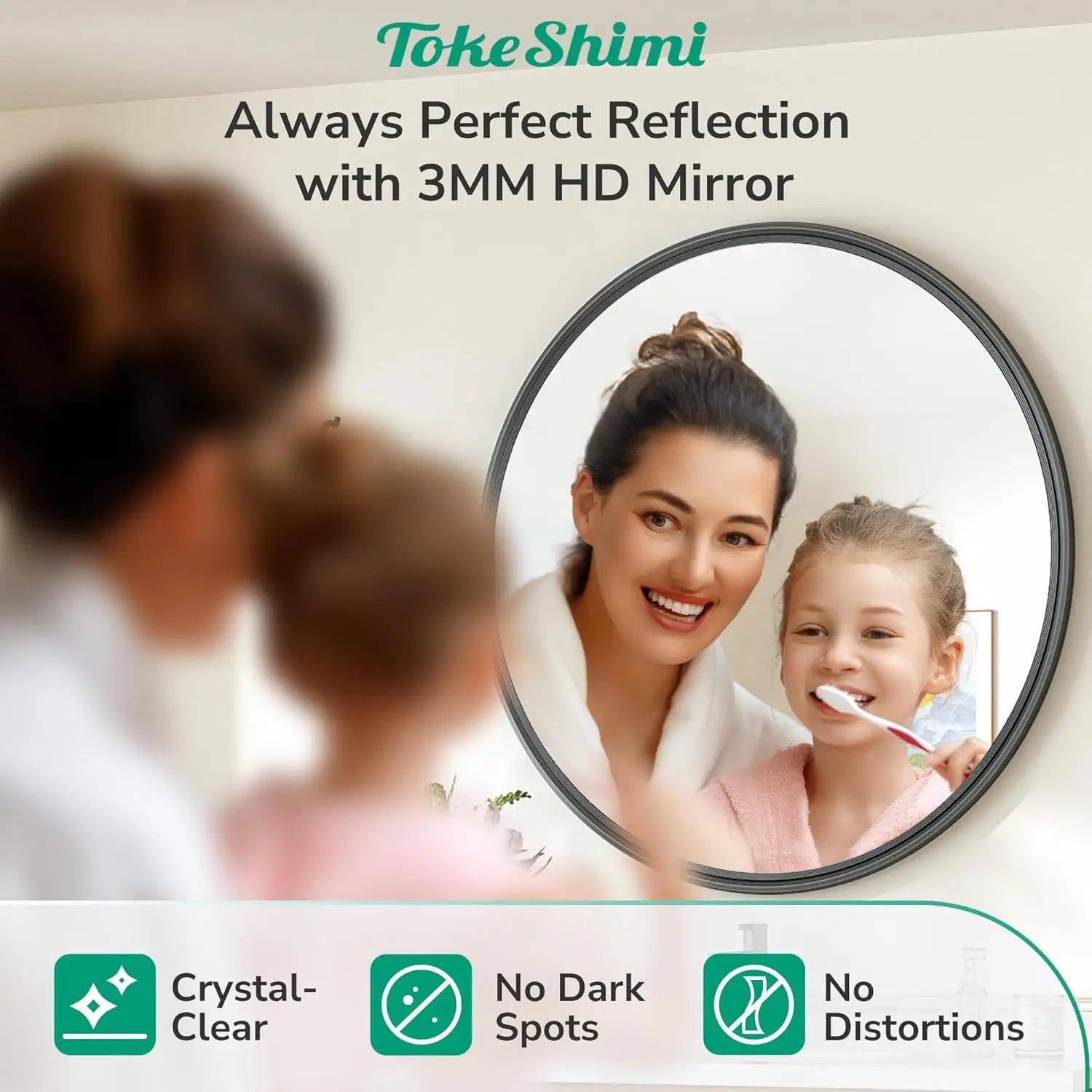 4. Built to Last: Engineered with solid glass, this round wall mirror is not only more durable but also more fall-resistant. This wall mirror for bathroom is designed for longevity, making it a reliable addition to your home for years to come.Plus, its waterproof and moisture-proof features make it perfect for high-humidity areas like bathrooms, so you can enjoy a crystal-clear reflection without worry.