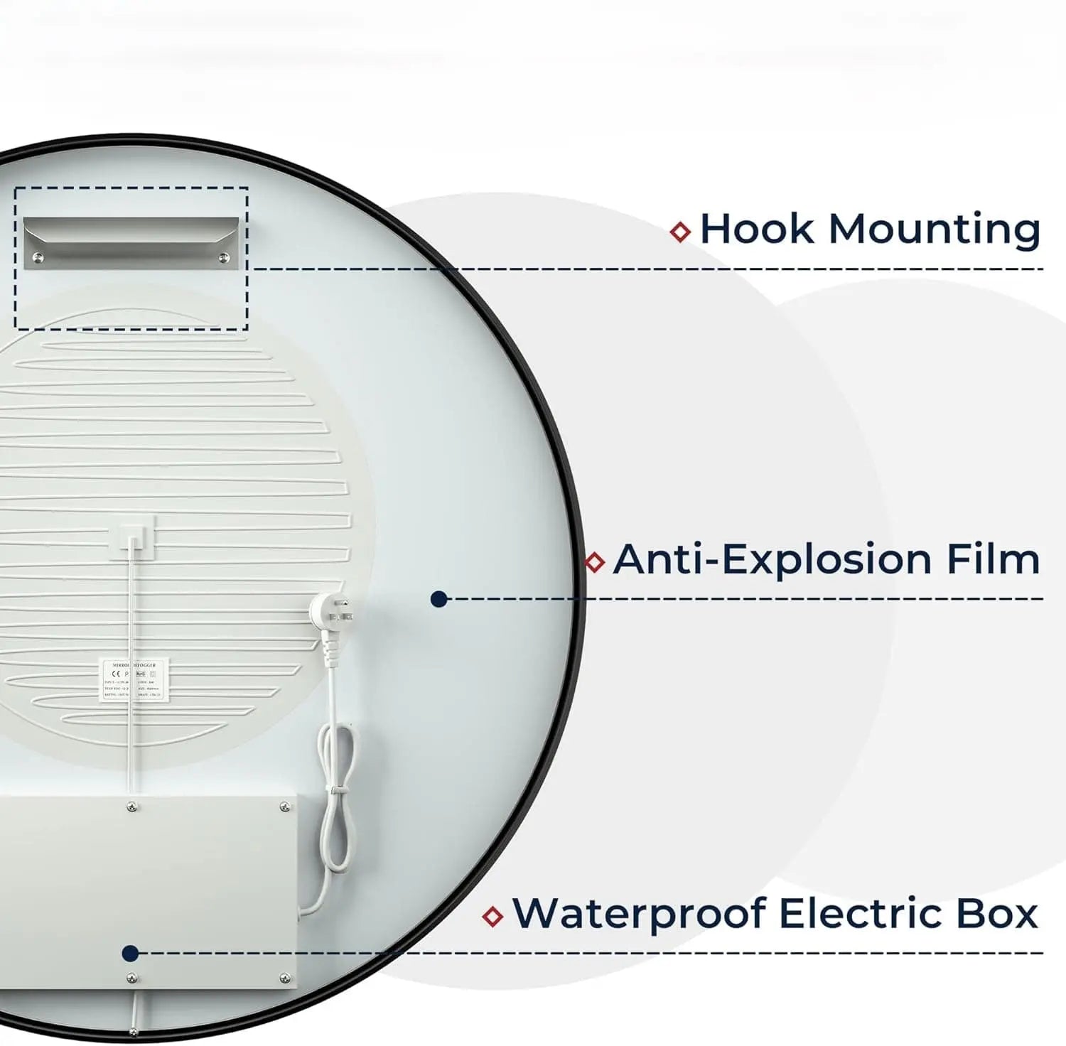 2. Dimmable & 3 Color Temperature: The brightness and color temperature of this led round vanity mirror are supported to adjust for your need. With memory function, this round bathroom mirror with lights will retain the lighting state of the previous use, no need to adjust again.