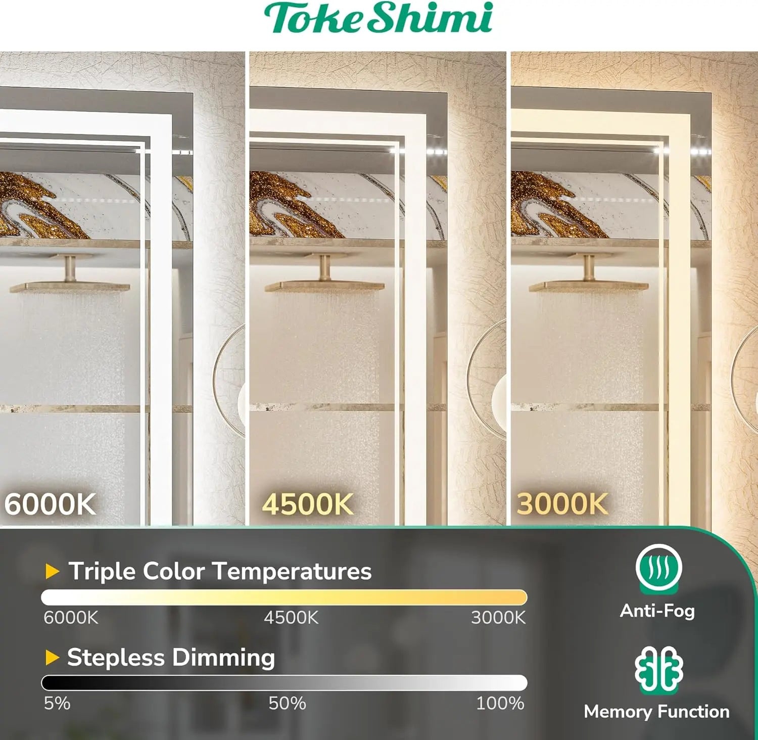 2. Anti-fog Technology: Do you love taking warm baths or hot showers? You won’t need to wipe the smart bathroom mirror down or wait 10 minutes for the condensation to clear. You’ll step out to a perfectly clear reflection every time. Perfect if you’re in a rush for work or getting ready for a fun evening. The memory function remembers your preferred light setting for next time.